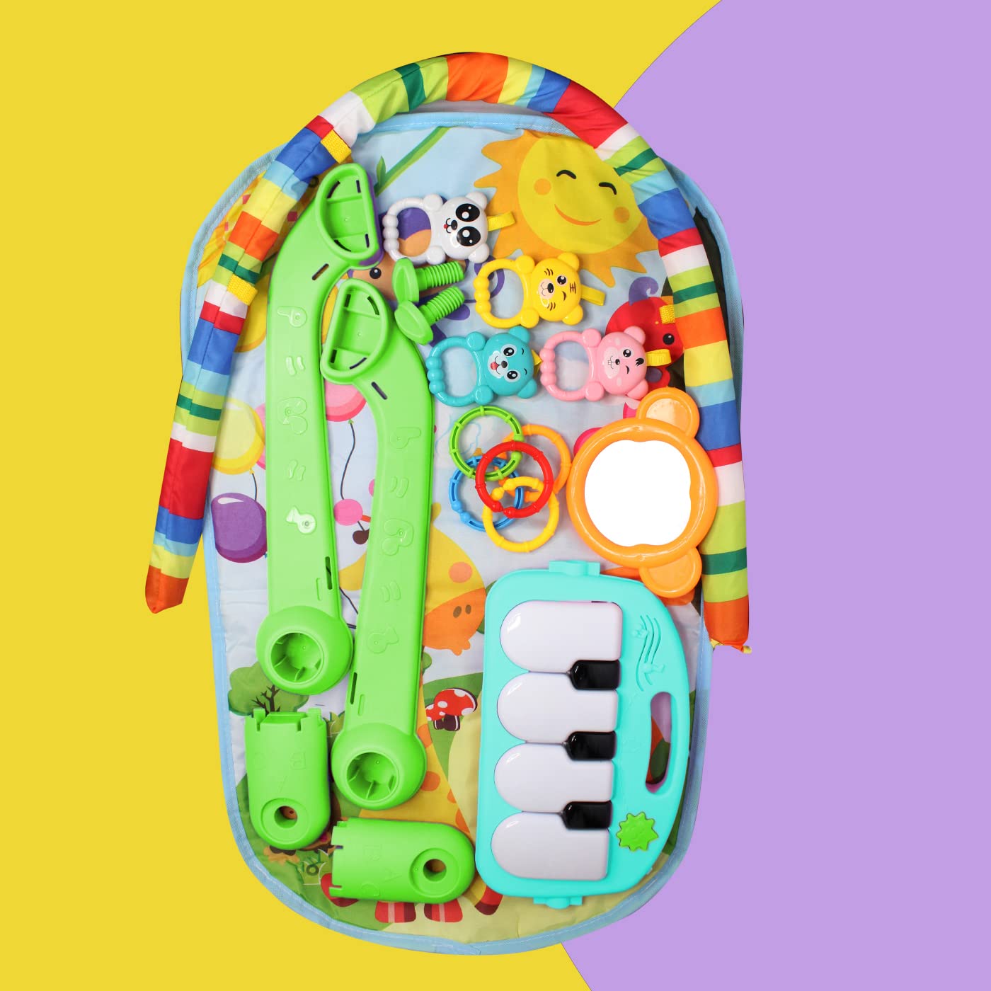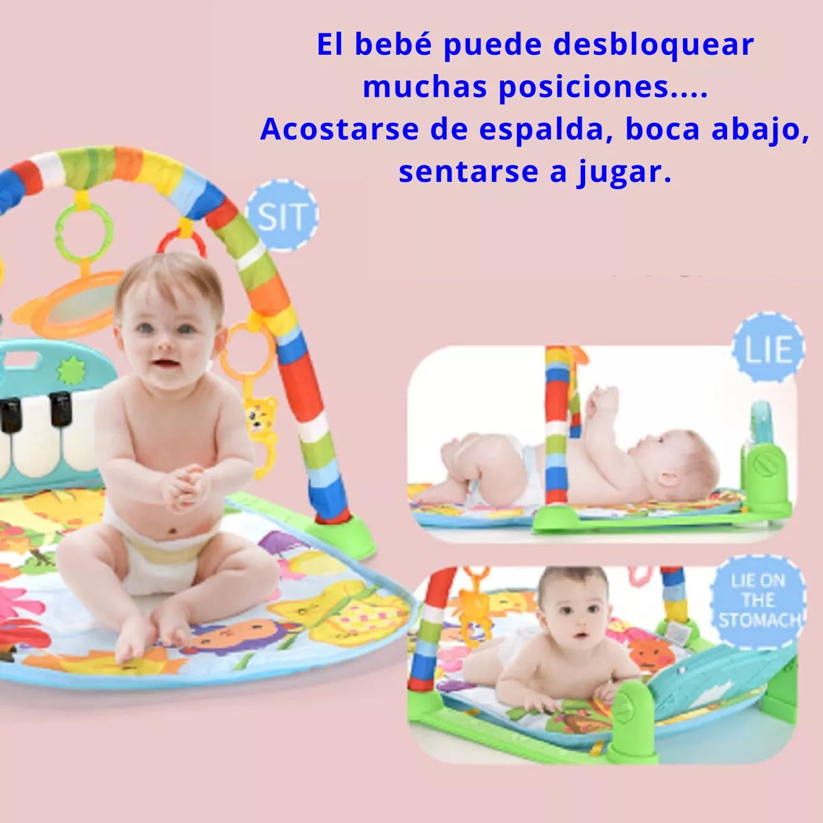 Gimnasio musical cómodo para bebés, ideal para estimular la motricidad y los sentidos mediante sonido, luz y una variedad de colores llamativos. Se transforma en un instrumento musical adaptable a la cuna y en un piano para cuando el bebé pueda sentarse, además de ser un gimnasio para cuando aún están acostados.