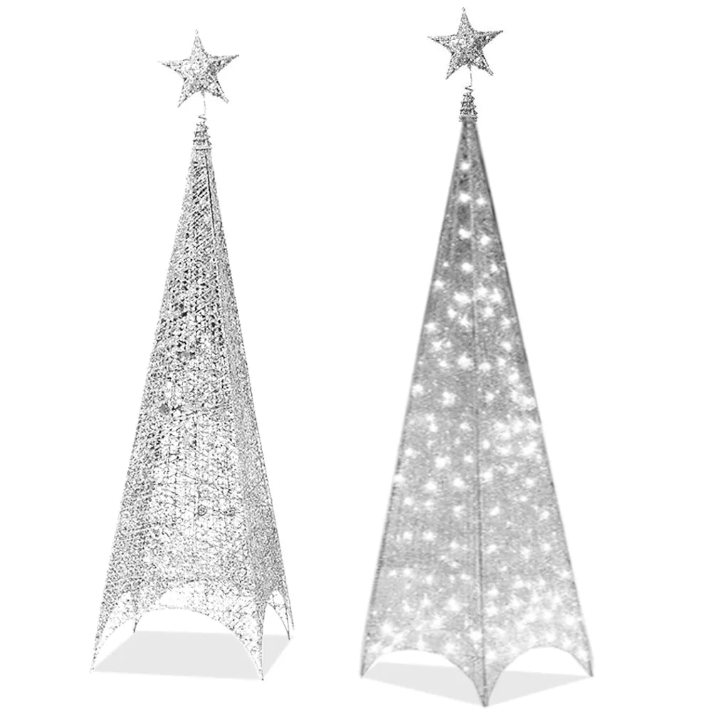 Incluye luces Led (árbol dorado con luz cálida, árbol plateado con luz fría)