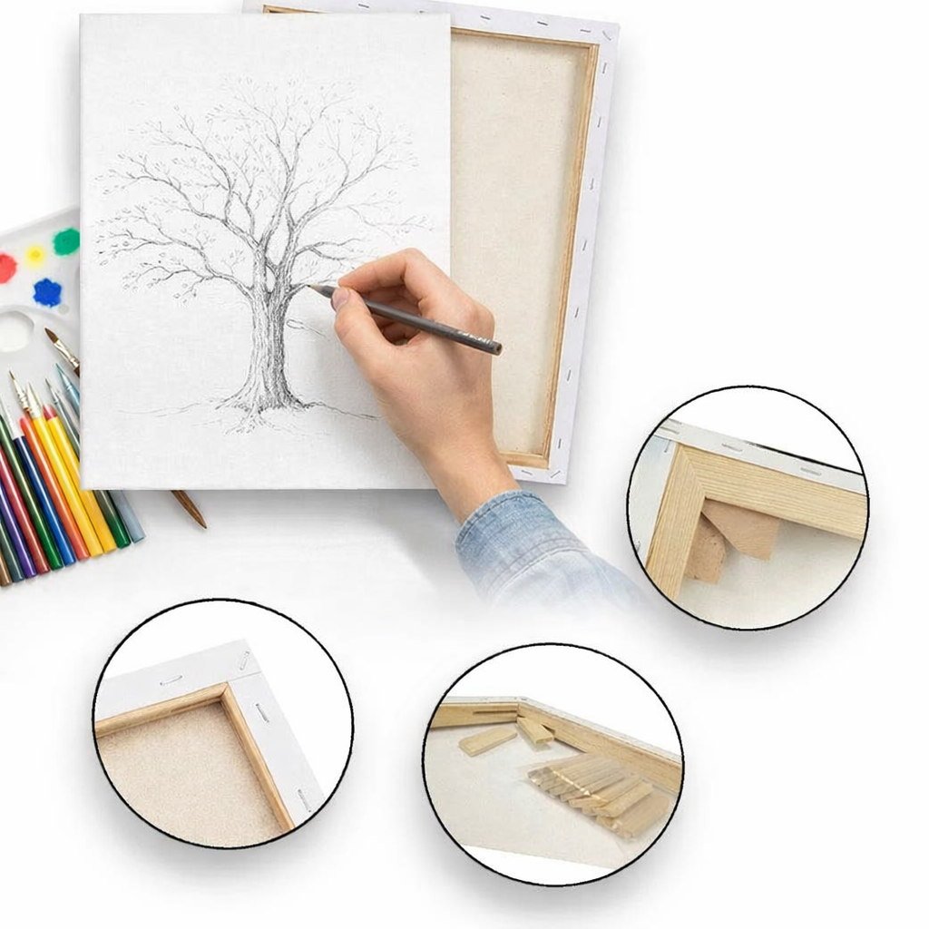 Lienzo de alta calidad - Hecho de lienzo de calidad superior 100% algodón, Libre de ácido. superficie perfecta para la pintura que mantiene el color y previene la fuga de la pintura a través de la parte posterior. - Construidos con solidez - Estos lienzos pretensados vienen grapados en un bastidor de madera de pino para ofrecer un soporte firme. Un material de pintura con una calidad excelente y un precio genial. - Superficie de algodón para diferentes medios - Los lienzos vienen ya tensados y se pueden usar con múltiples medios artísticos, desde pinturas al óleo y acuarelas hasta acrílicos, temple y gouache. - La elección perfecta para regalos - ideal para artistas y aficionados, muy adecuada para pinturas, manualidades y decoración del hogar.
