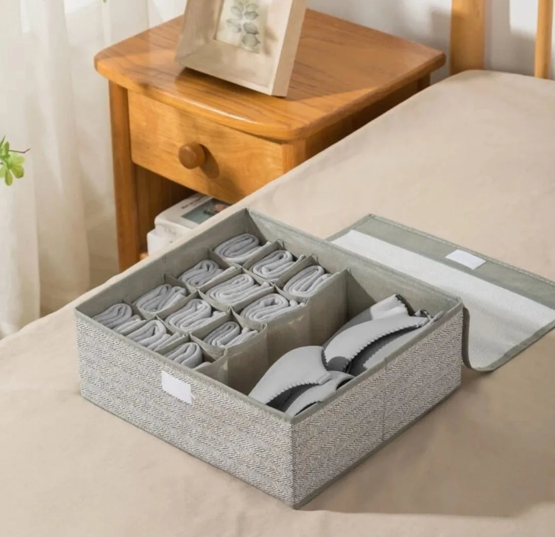 2. Gran capacidad- dos tamaños de compartimentos cumplen diferentes requisitos. 12 compartimentos más pequeños se utilizan para guardar ropa interior, calcetines, corbatas y más, mientras que el más grande es para sujetadores, bufandas y otros artículos más grandes. Su construcción racional no solo ayuda a ahorrar espacio, sino que también asegura un acceso rápido a lo que necesita.