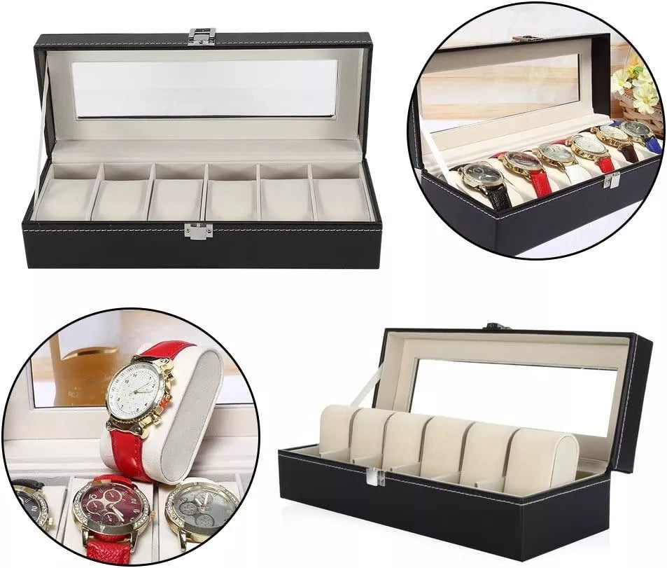 Práctico organizador que protege tu colección de relojes del polvo, accidentes, agua derramada, rayaduras, etc.