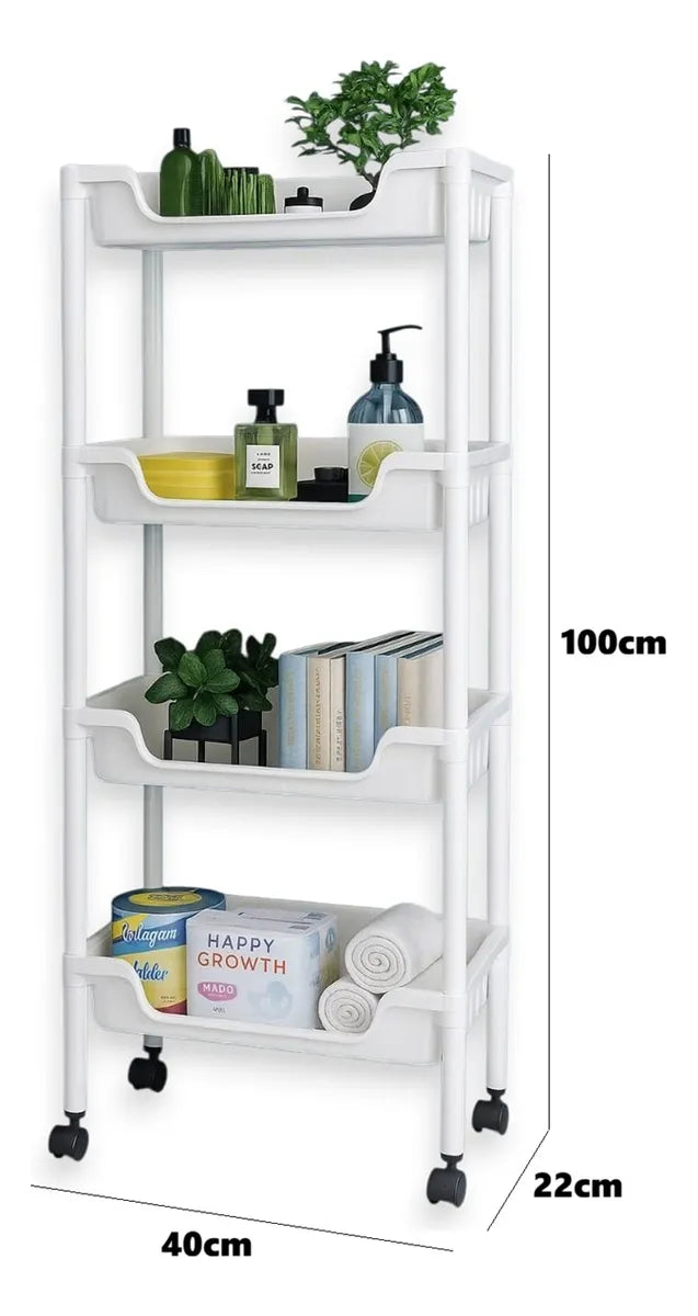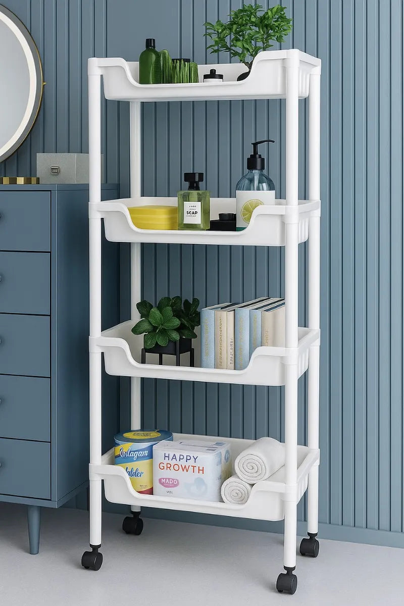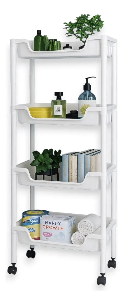 Organiza tus espacios de manera práctica y elegante con este carrito organizador de 4 niveles, ideal para mantener tus productos de cocina, higiene personal, cosméticos o toallas siempre a mano. Gracias a su diseño compacto y funcional, es perfecto para espacios reducidos.