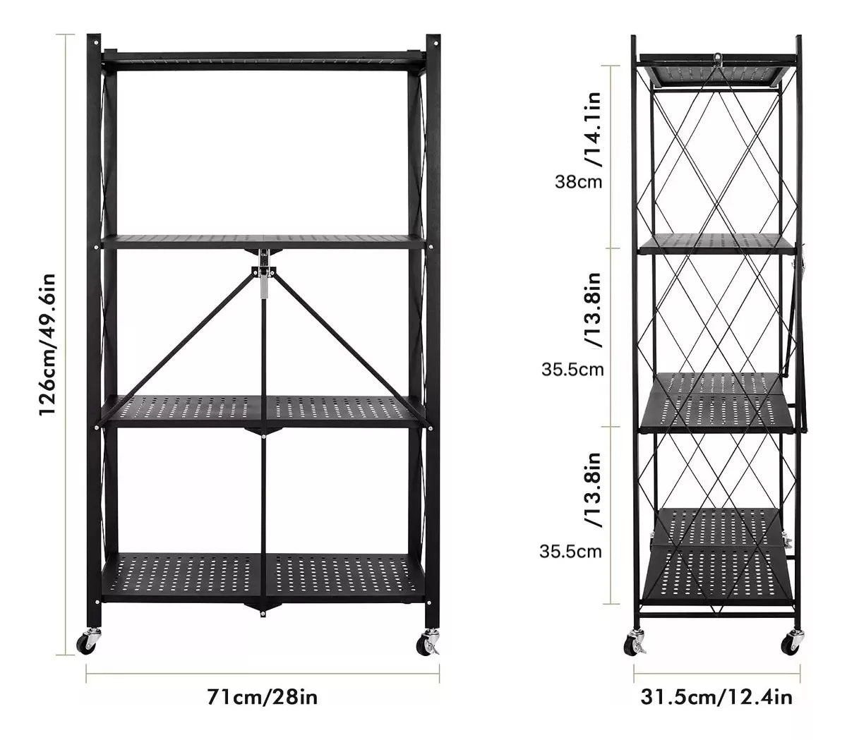 Este Carrito de Almacenamiento Carro Organizador con Ruedas de 4 niveles es la solución perfecta para mantener tu espacio ordenado y organizado. Con una profundidad de 31.5 cm, un largo de 126 cm y un ancho de 71 cm, este estante plegable es ideal para maximizar el espacio de almacenamiento en tu hogar u oficina.