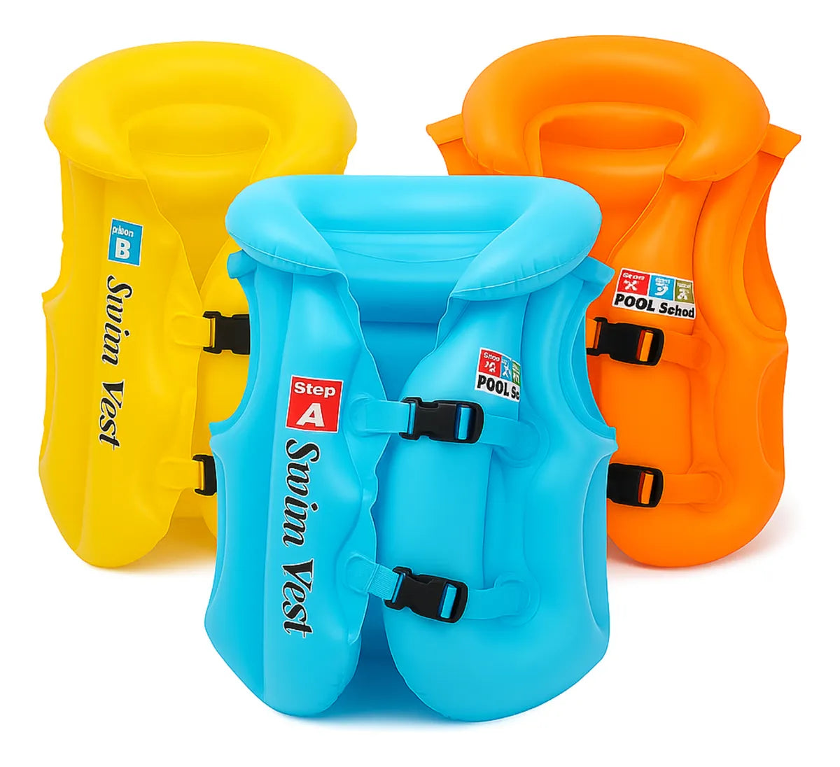 Chaleco de seguridad inflable que ofrece una buena flotación para el niño cuando se encuentra en la piscina.