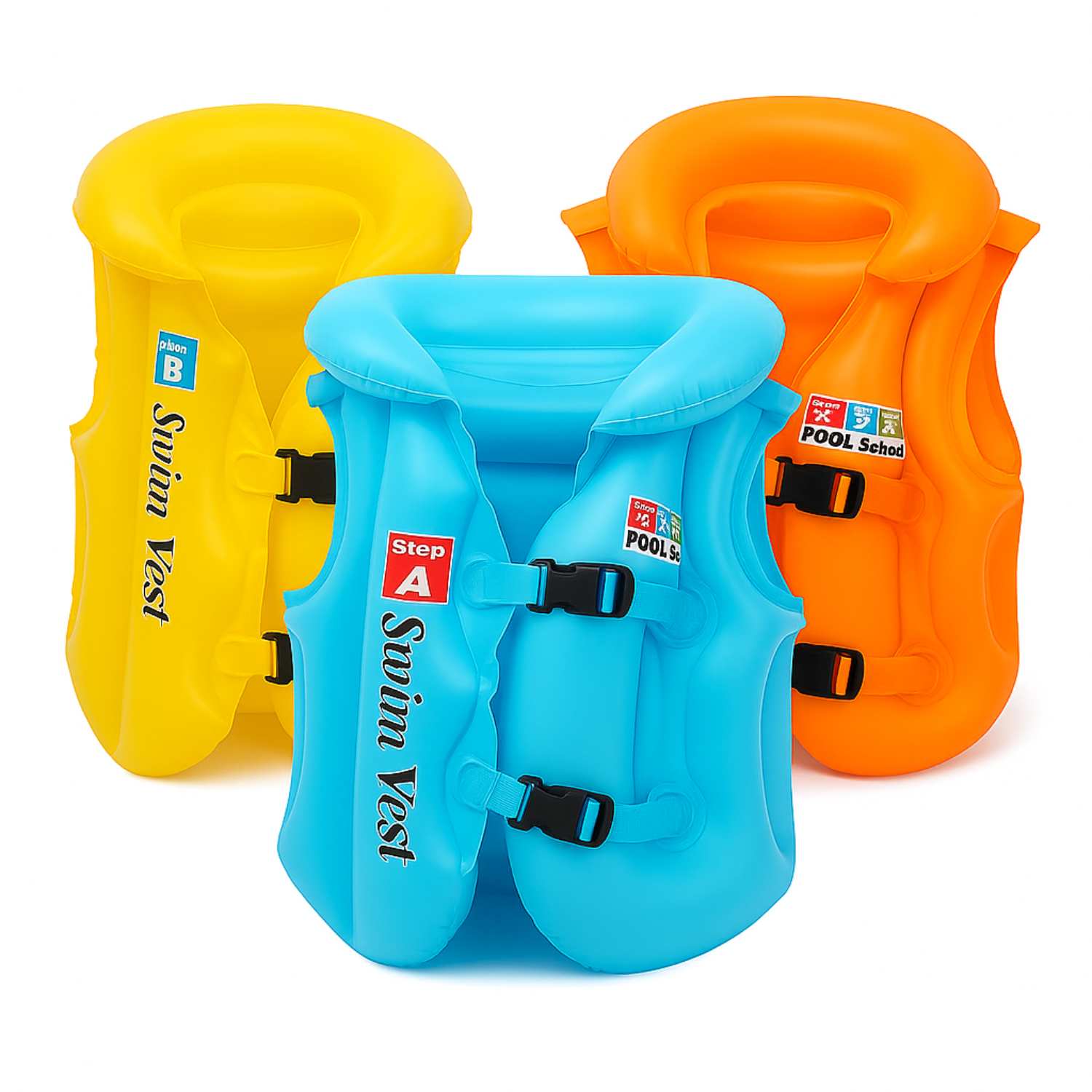Chaleco de seguridad inflable que ofrece una buena flotación para el niño cuando se encuentra en la piscina.
