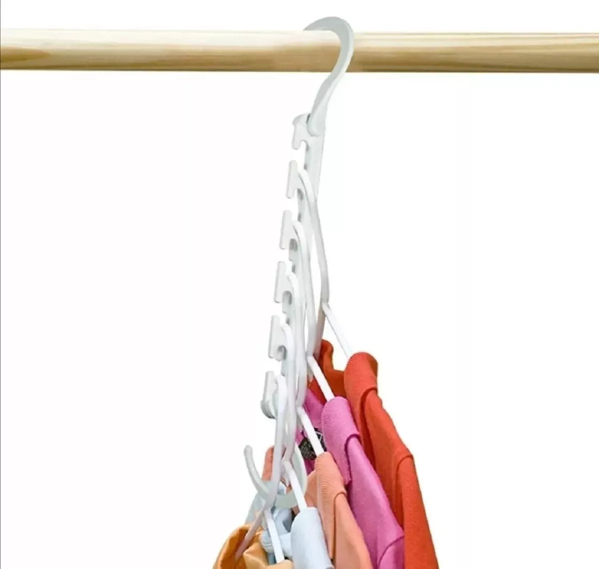 1.- Es un colgador organizador hecho en plástico de alta calidad, que te ayuda a almacenar y clasificar tu ropa, ahorrando espacio dentro de tu closet o ropero.