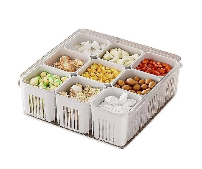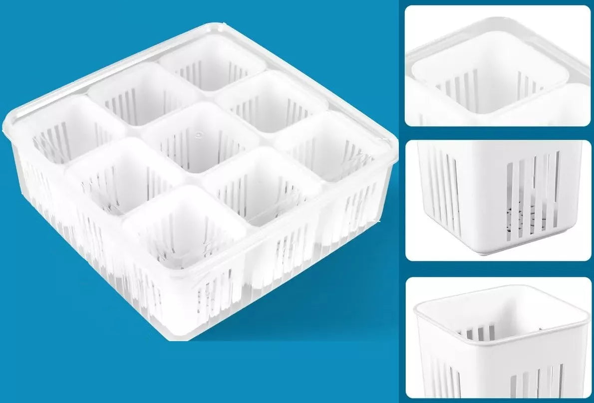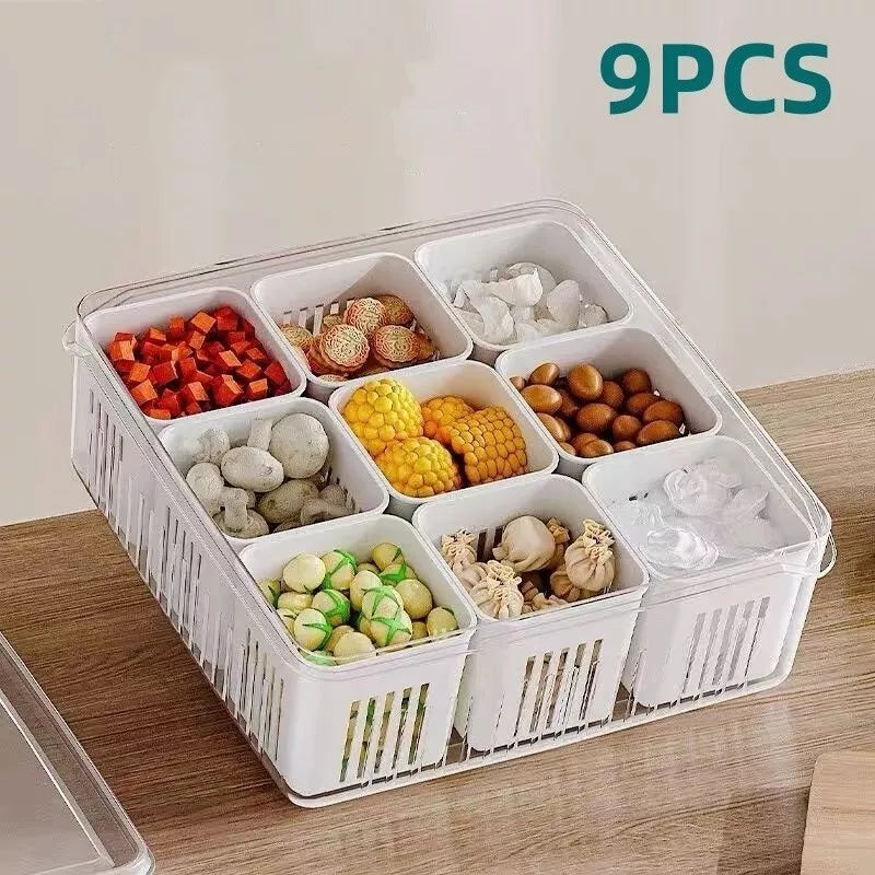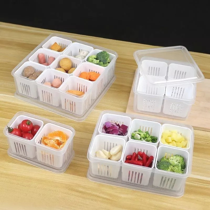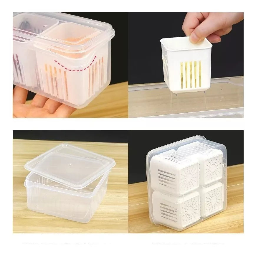 Compartimiento de drenaje: El compartimiento de drenaje dentro de la caja asegura que el exceso de agua se drene rápidamente, extendiendo el tiempo de conservación de sus alimentos y manteniendo su sabor.