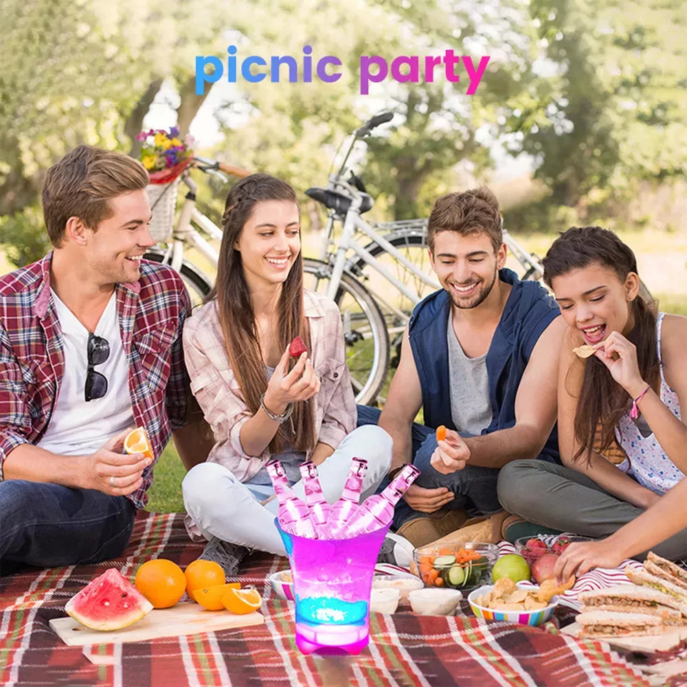 Diseñado para entusiastas de las fiestas y aventureros al aire libre, este cubo de hielo LED es imprescindible para aquellos que aman entretener. Ya sea que estés organizando una reunión en la playa, una boda familiar o simplemente un picnic en el parque, este versátil cubo de hielo elevará tu experiencia.