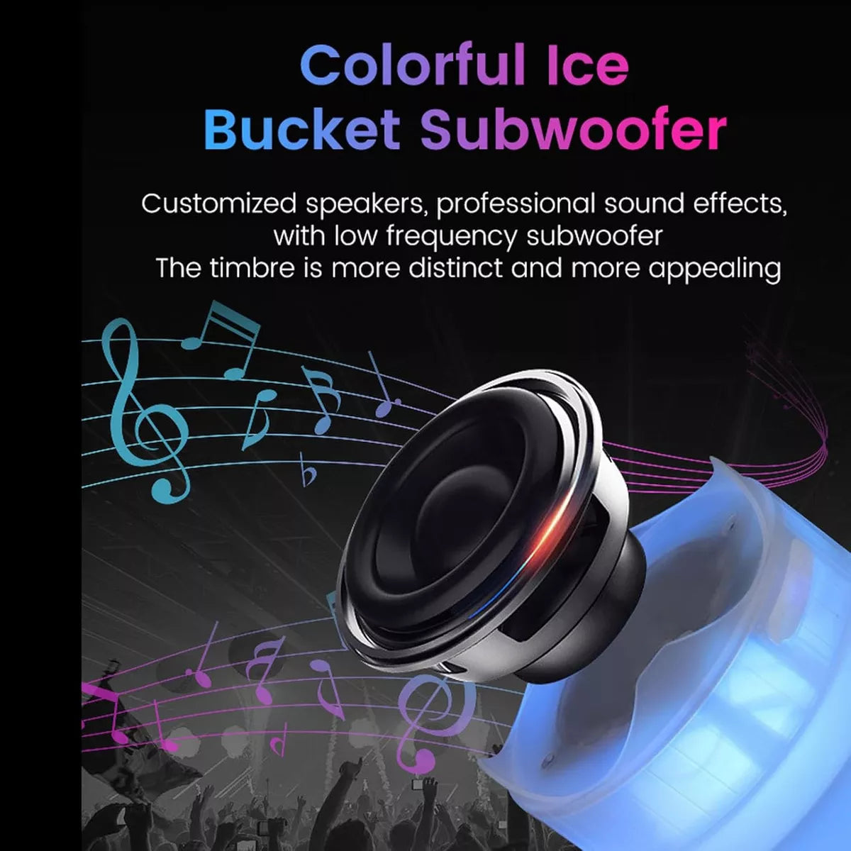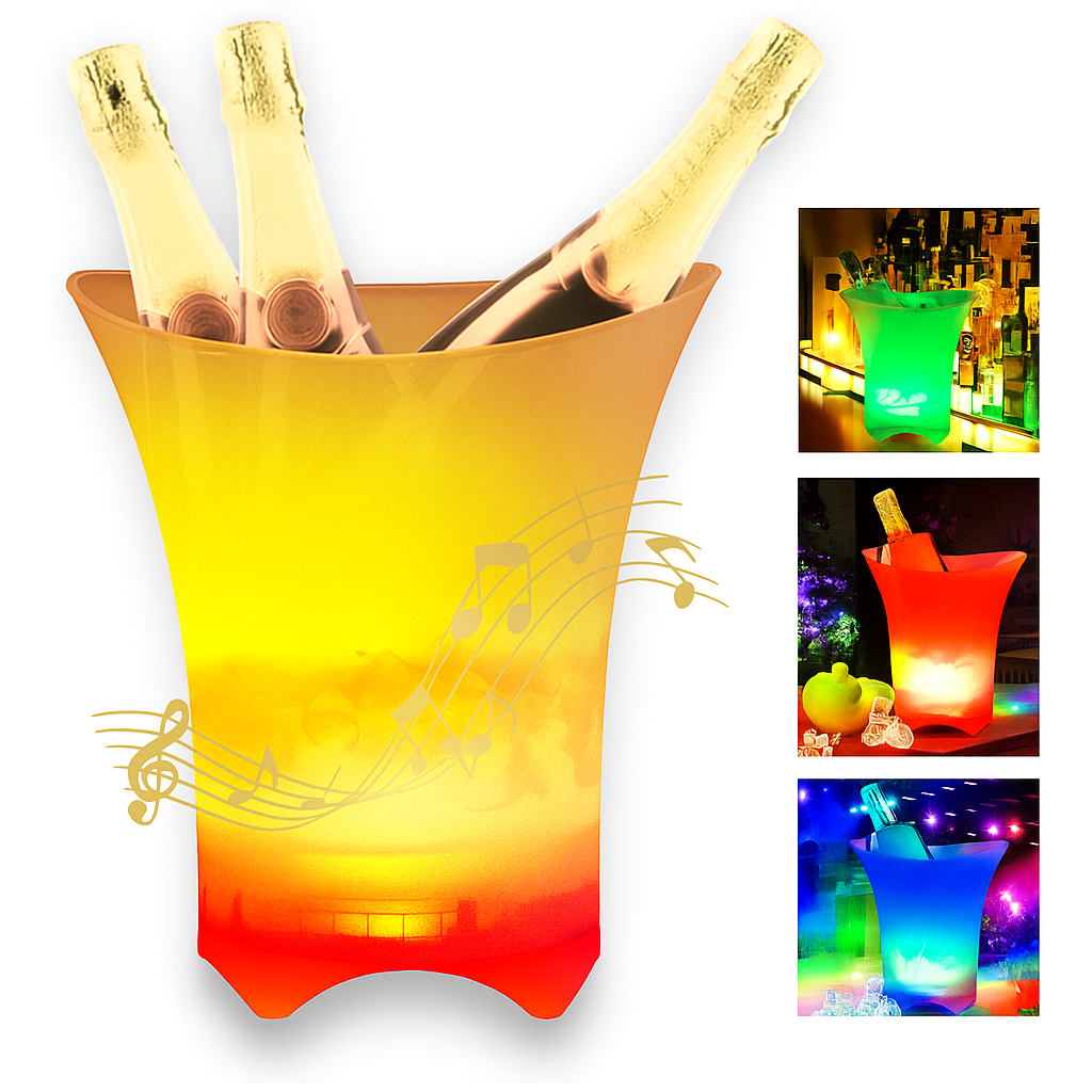 Elegante cubo de hielo LED con altavoz inalámbrico, portátil y duradero para fiestas y cubo de hielo LED al aire libre.