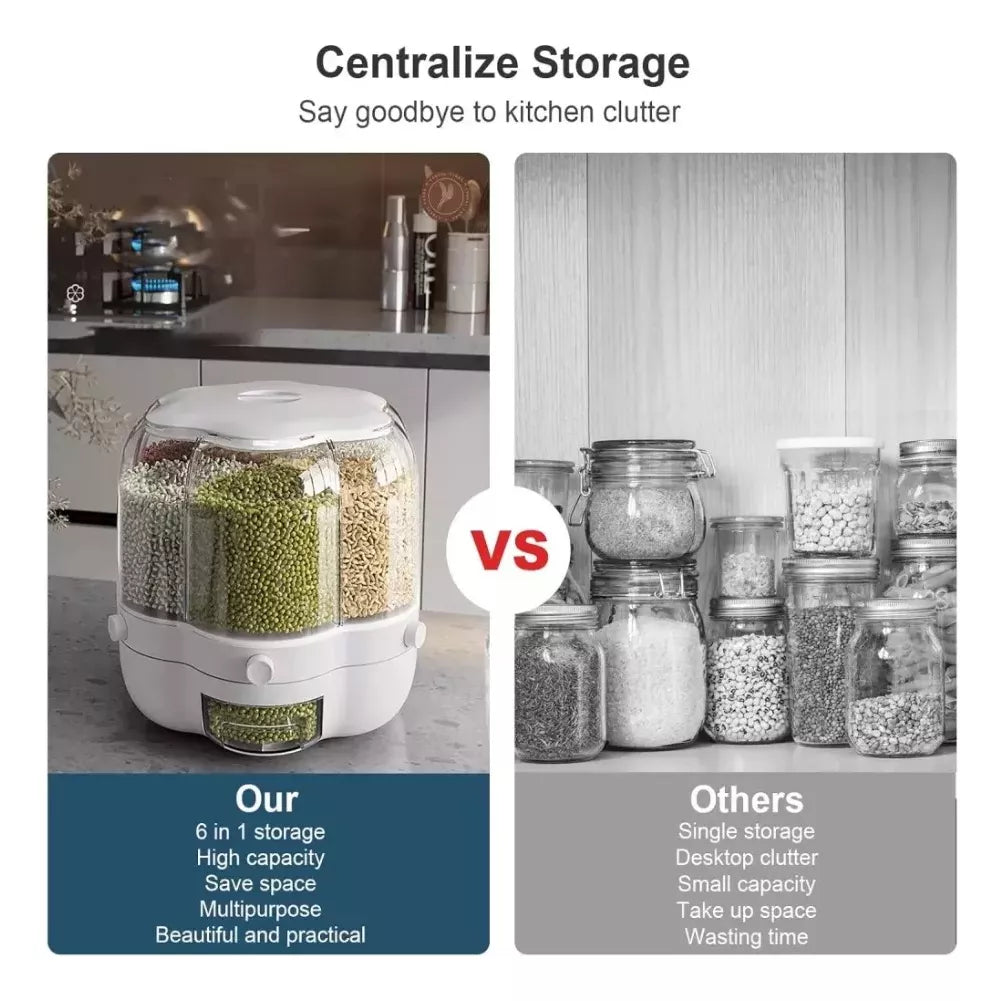 Dispensador De Granos Cereal Giratorio 6 Divisiones 360°