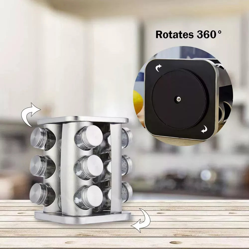 Especiero Acero Inoxidable Giratorio Condimentero 12 Frascos