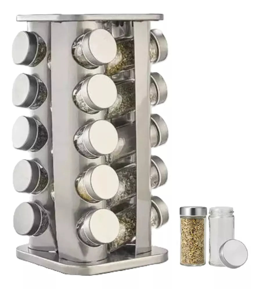 Especiero Acero Inoxidable Giratorio Condimentero 20 Frascos