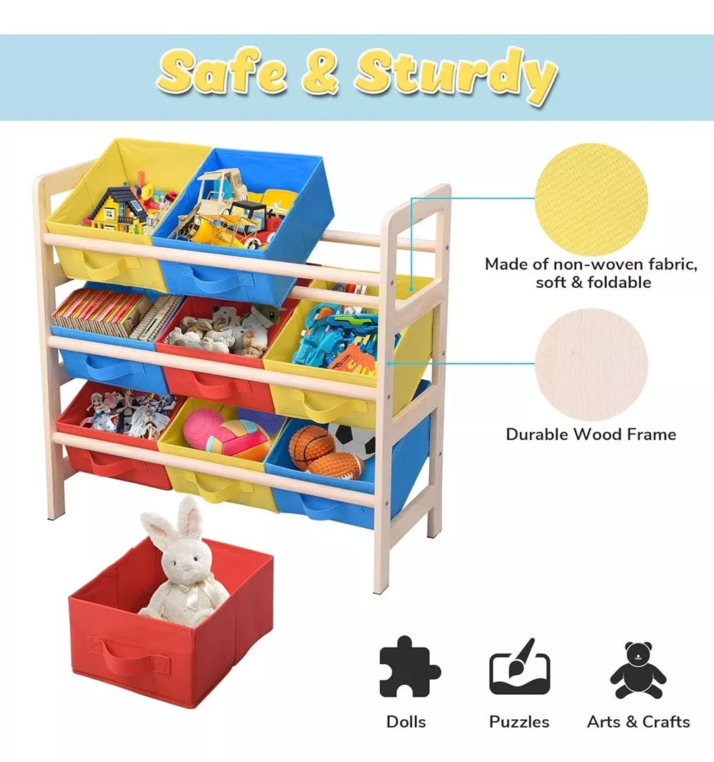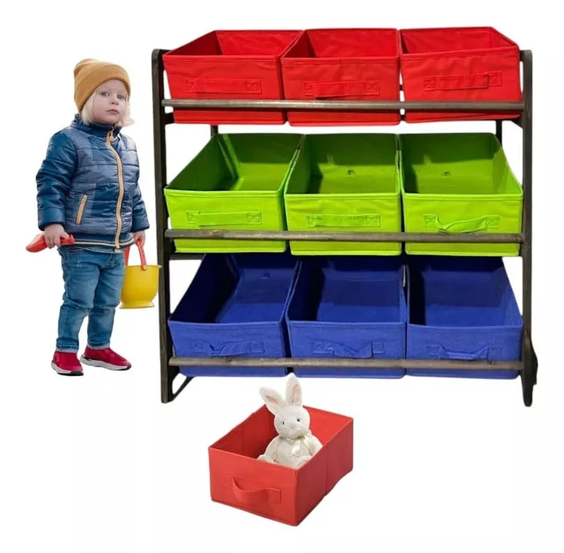 El organizador de almacenamiento de juguetes para niños viene con 9 contenedores de almacenamiento extraíbles con asa para guardar y organizar los juguetes de sus hijos de manera ordenada y de fácil acceso después del tiempo de juego, lo que facilita la limpieza.