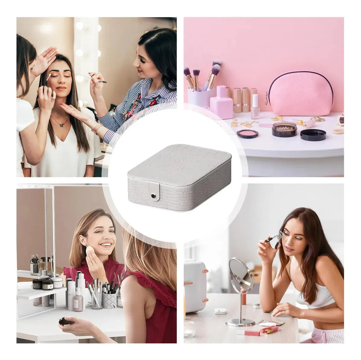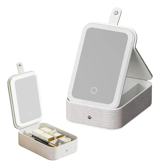 Estuche Cosmetico Con Espejo Bolso Maquillaje Luz Led Blanco