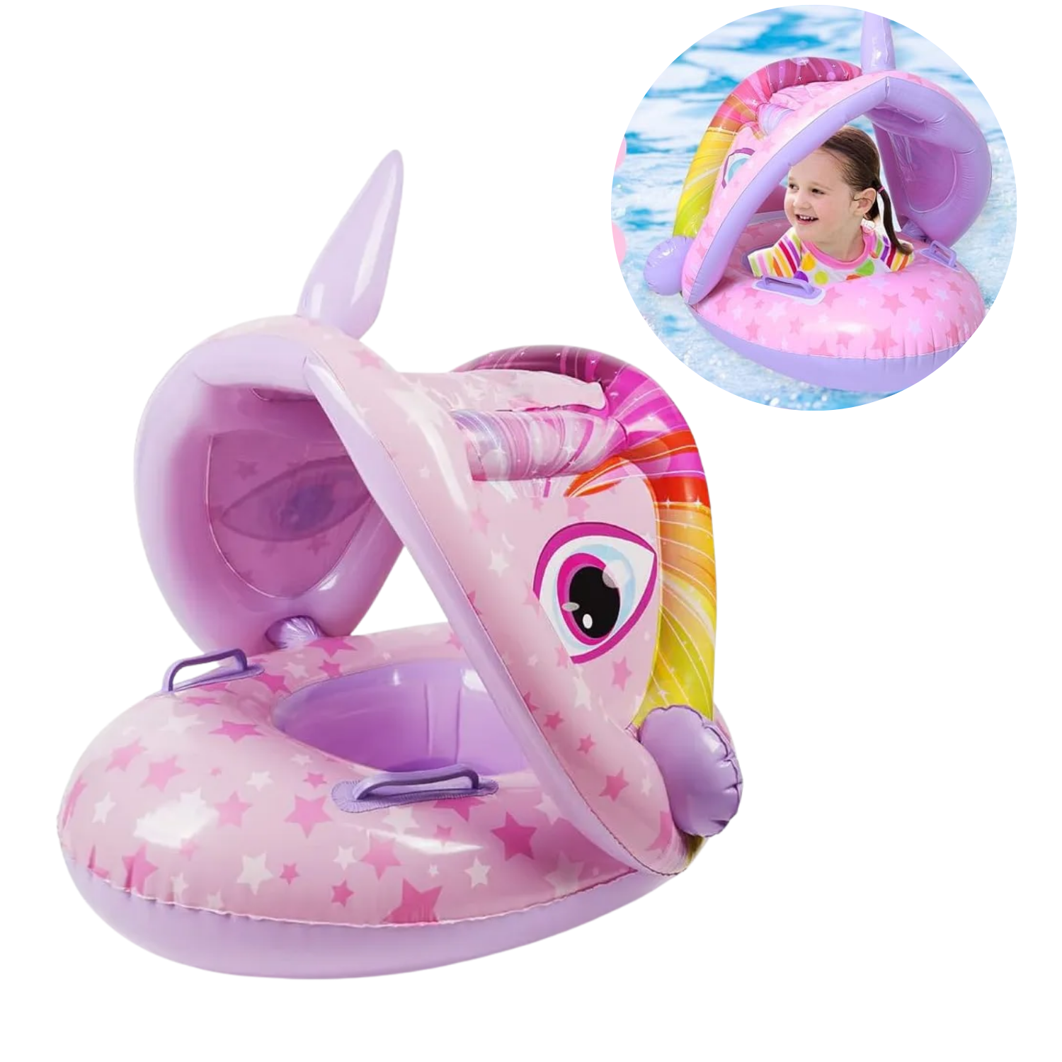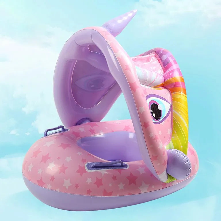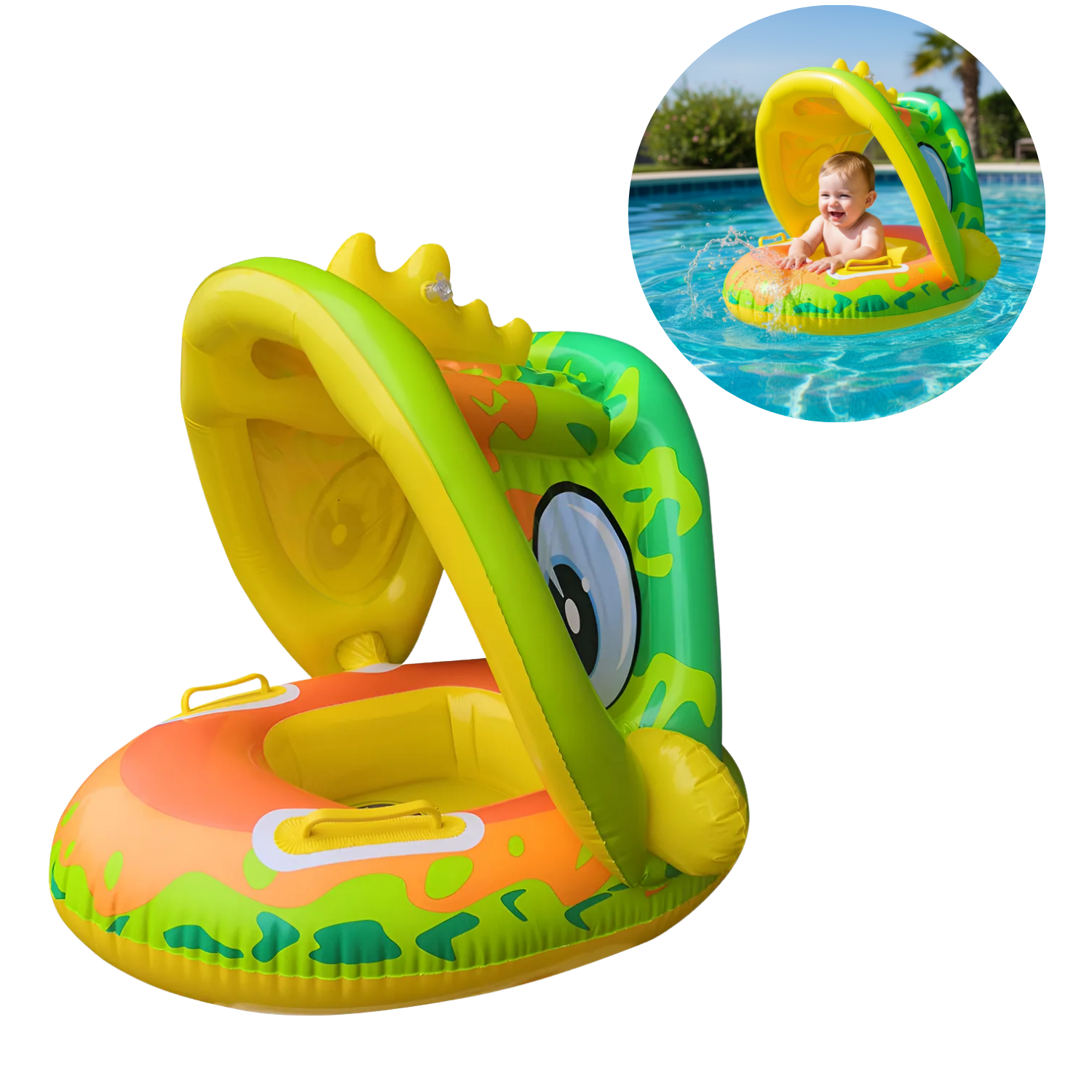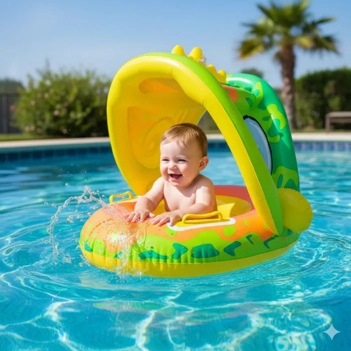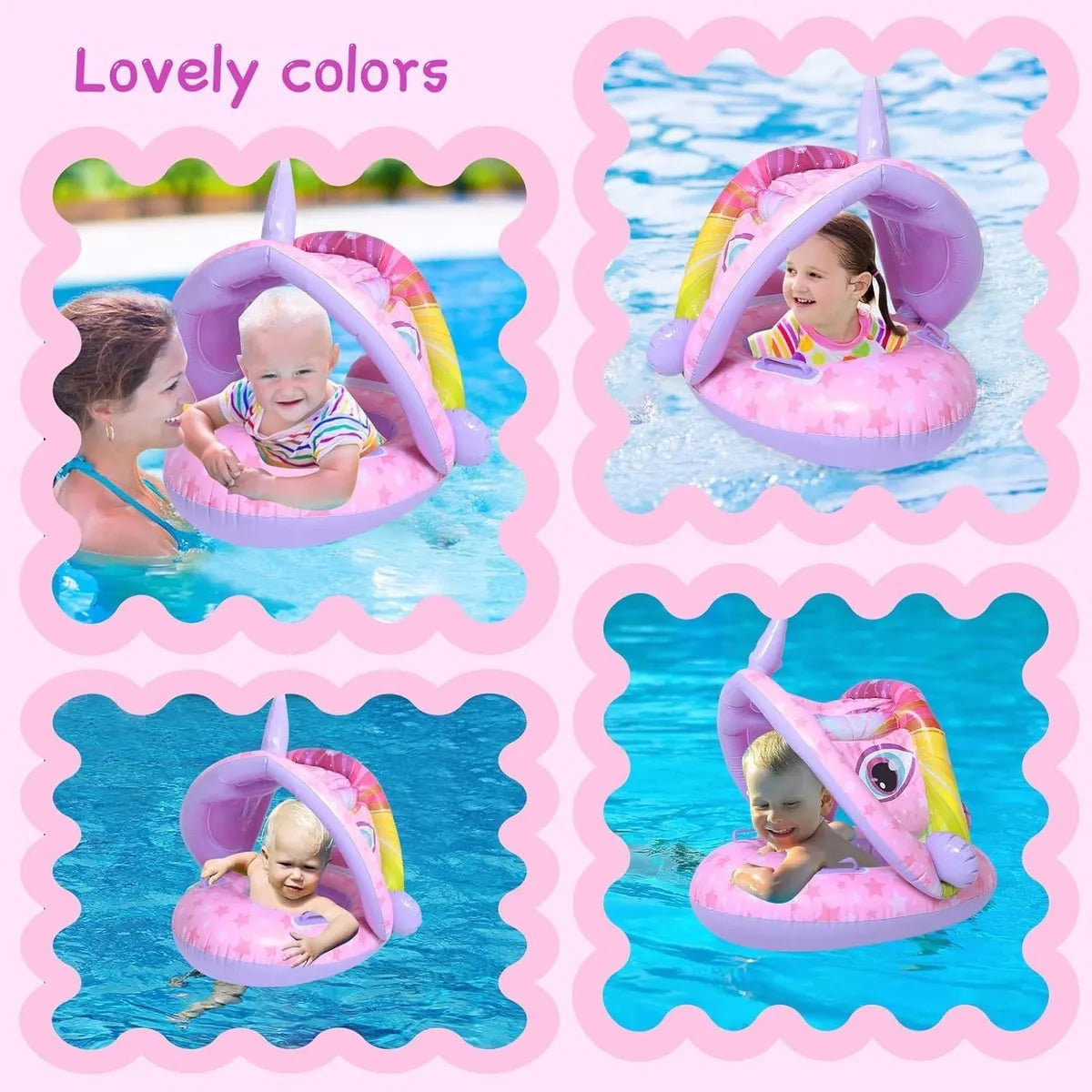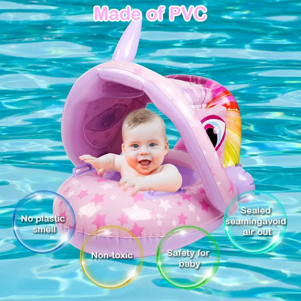 Diseño de parasol: El anillo de natación para bebés con parasol protege a los bebés del sol, fácil de instalar y quitar, se puede ajustar hacia arriba y hacia abajo o quitar en función de la exposición al sol.