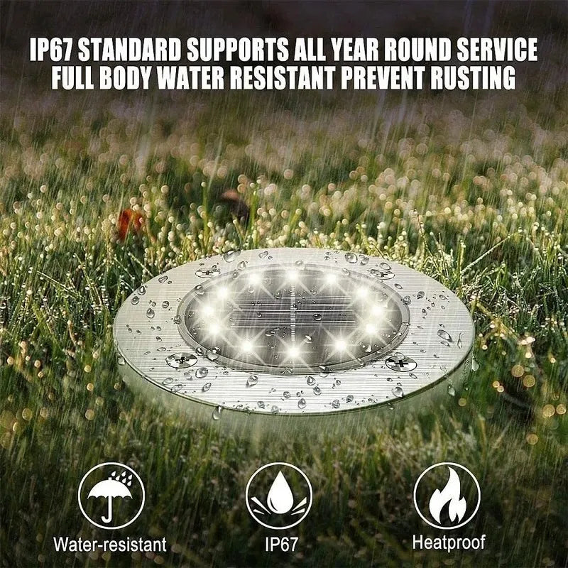 1. Funcionamiento automático. Sensor de luz integrado con colector solar. La luz solar enterrada puede encenderse automáticamente por la noche y apagarse automáticamente durante el día o con luces brillantes. Se recargan gracias a la luz solar, absolutamente mejor si están directamente expuestos, por lo que las baterías se recargarán al 100% y durarán mucho más. Además, hay un botón de alternancia en la parte posterior. Si quieres ahorrar más energía, apágalo.