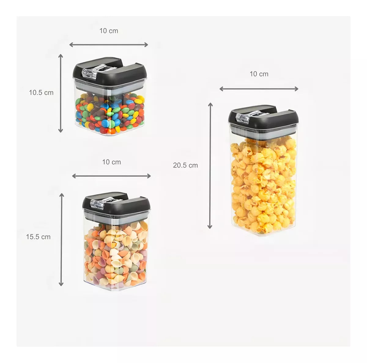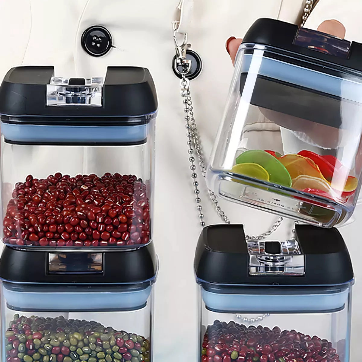 lo que te permite organizar la cocina y liberar espacio en la despensa. Estos recipientes transparentes también son fáciles de limpiar.