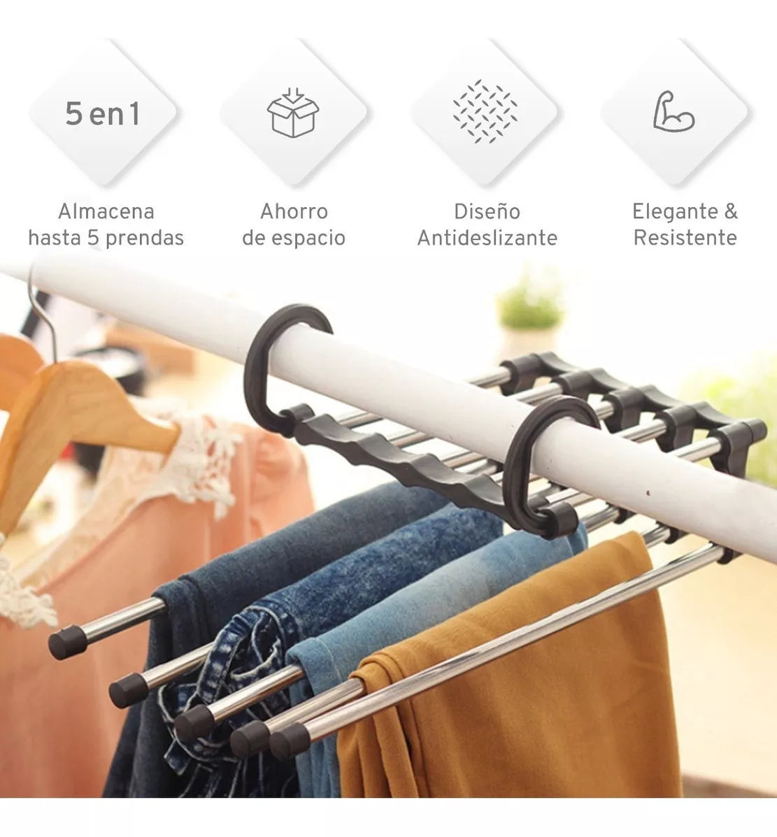 Gancho Pantalones 5en1 Organizador Multiple Ahorra Espacio