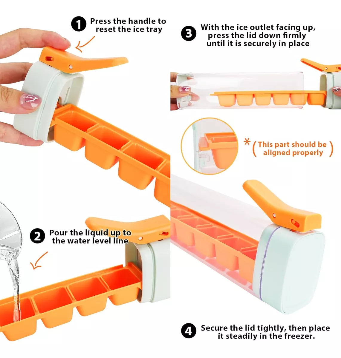 Nuestro molde vertical de hielo, están especialmente diseñadas para glaseado con una sola mano. Con solo presionar suavemente una mano, el hielo se caerá automáticamente sin necesidad de contacto manual, asegurando la higiene y facilidad de uso