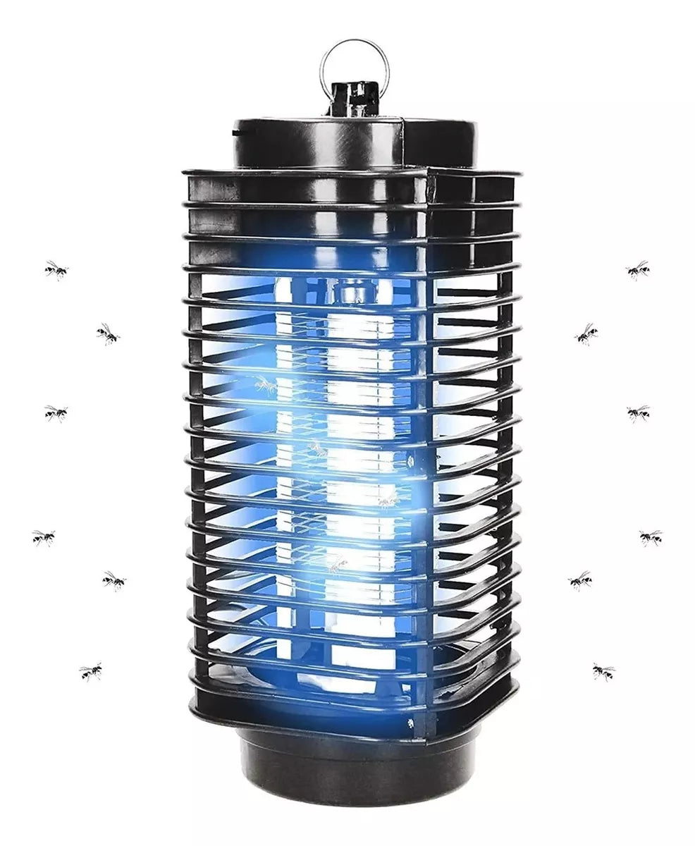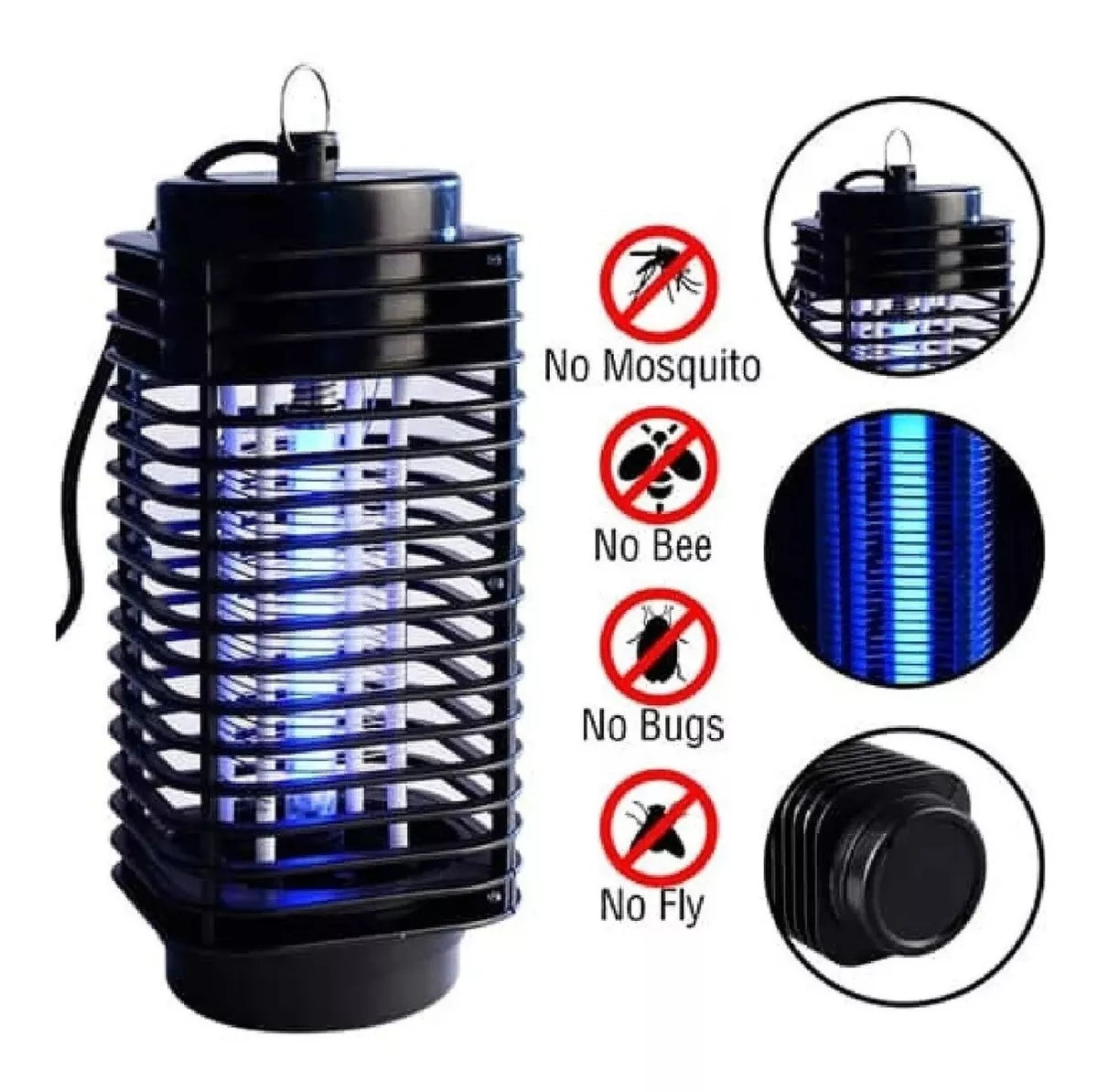 Cuenta con luz ultravioleta que atrae a todos los insectos desagradables al volar cerca de el, tocan la malla interna de metal y la descarga electrica los mata