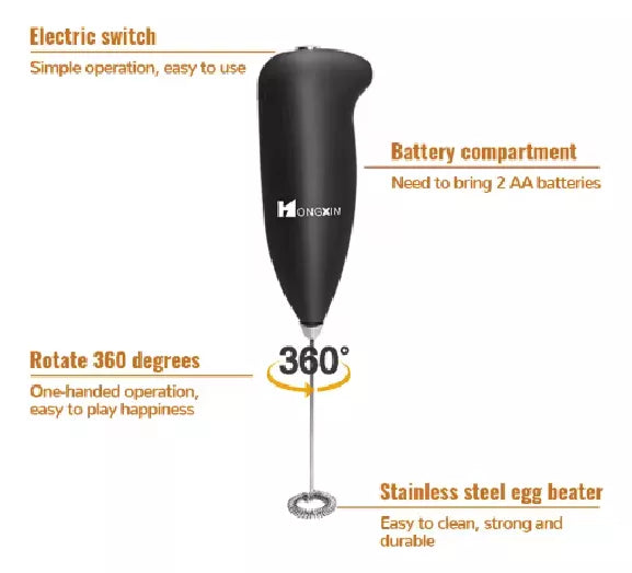 Este mini batidor manual eléctrico es adecuado para revolver huevos, café, leche o endulzar .