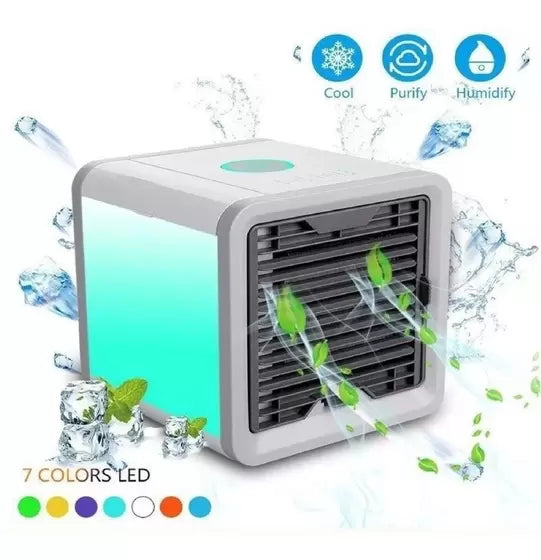 Este Mini Enfriador Portátil es la solución perfecta para mantenerte fresco en cualquier lugar. Con un diseño compacto y ligero, podrás llevarlo contigo a donde vayas. Además, cuenta con funciones de purificador de aire y humidificador, para mejorar la calidad del ambiente en tu hogar u oficina.
