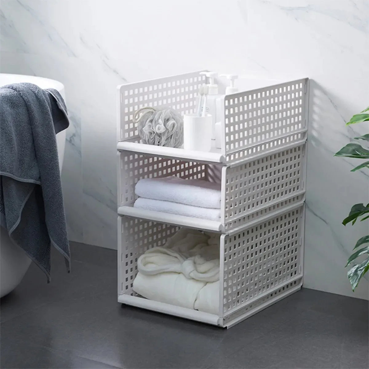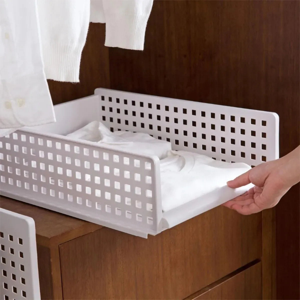 Con diseño apilable, conveniente para almacenar suficiente ropa para satisfacer tus diferentes necesidades.