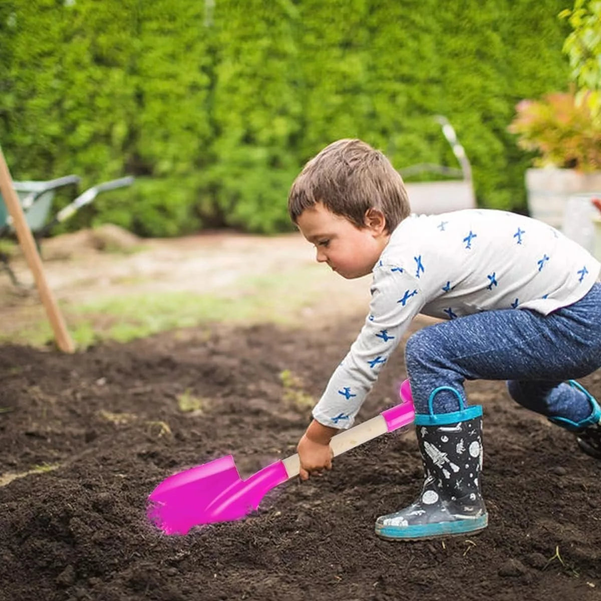 Sólida y resistente: la pala de juguete está hecha de plástico ABS de calidad y mango de madera, sólido y fiable, con una superficie lisa, no se decolora ni deforma fácilmente, amigable y seguro, fácil de servirte durante mucho tiempo