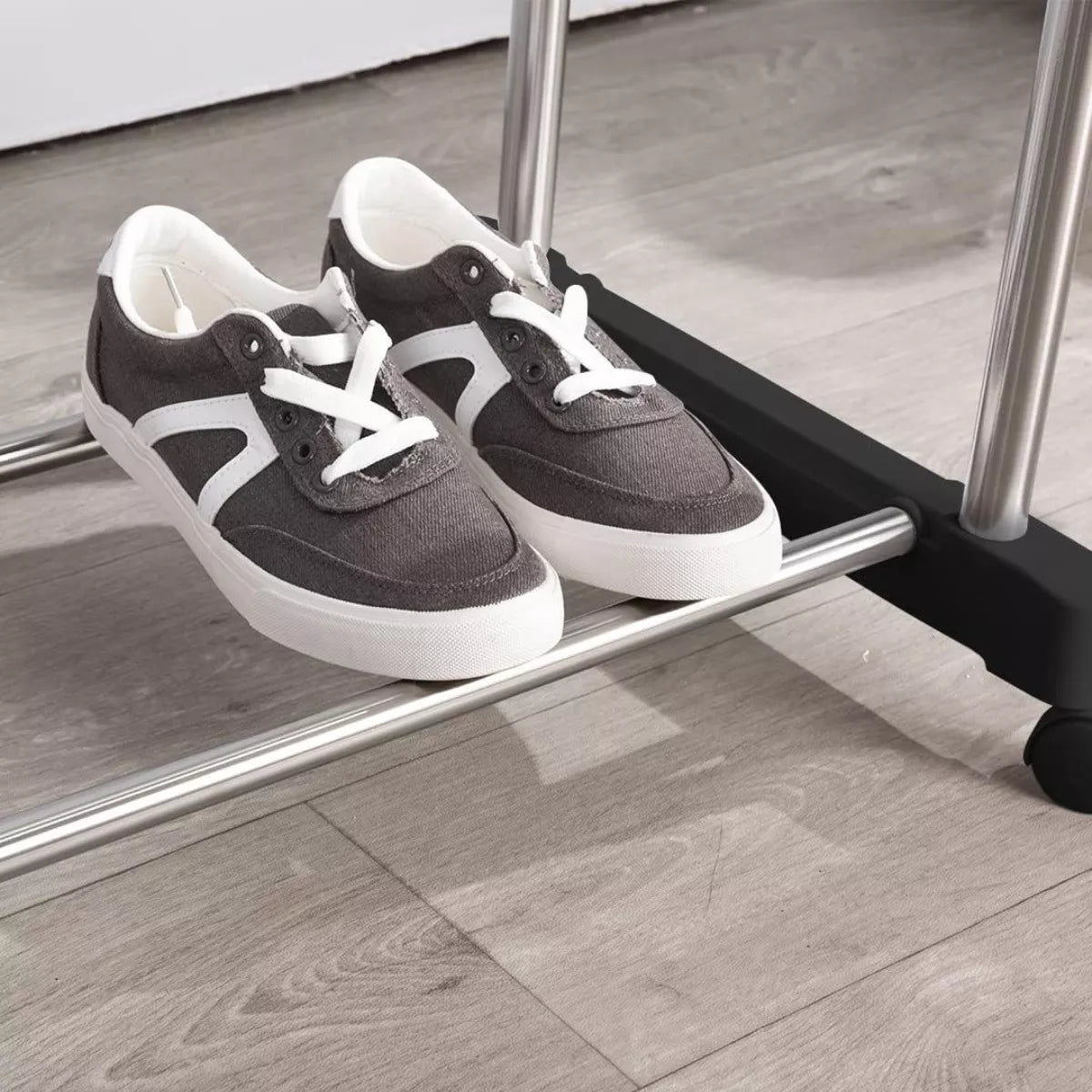 Perchero metálico, fácil de armar y transportar lo que lo hace una herramienta indispensable para showrooms, tiendas, negocios y también para tu dormitorio y hogar.