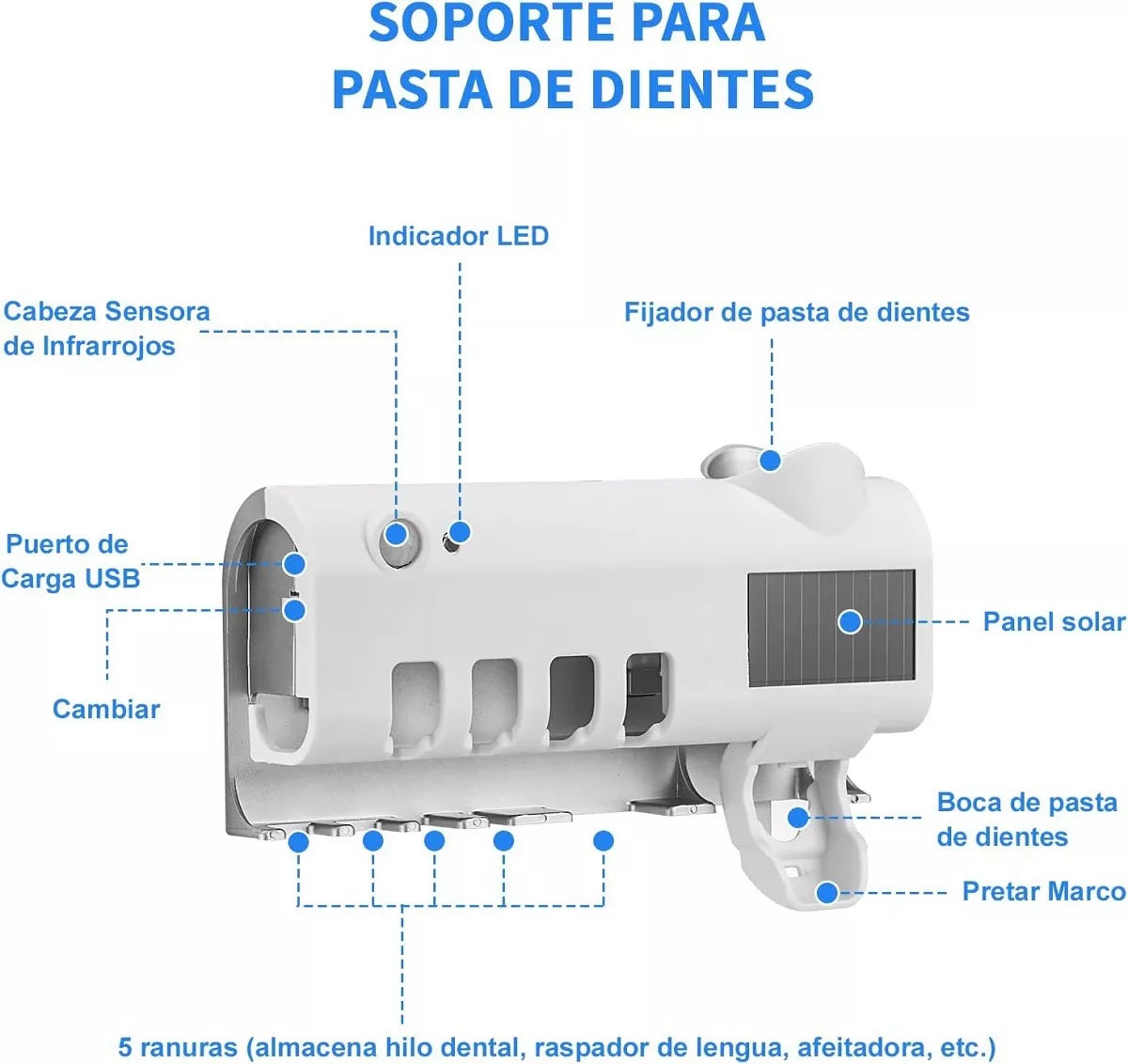Este esterilizador de cepillo de dientes porta hasta 4 cepillos, manteniéndolos organizados y libres de gérmenes. Con un diseño de pared, ahorra espacio en tu baño y mantiene tus cepillos protegidos. El dispensador facilita su uso diario, garantizando una higiene óptima para toda la familia. Fabricado en plástico resistente, este porta cepillos es duradero y fácil de limpiar. Aprovecha esta oportunidad para mantener tus cepillos de dientes siempre limpios y ordenados.