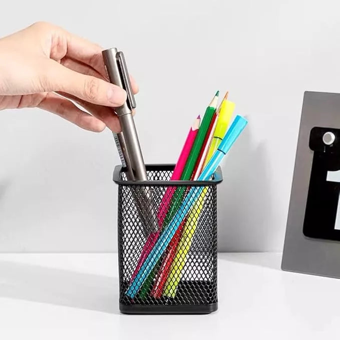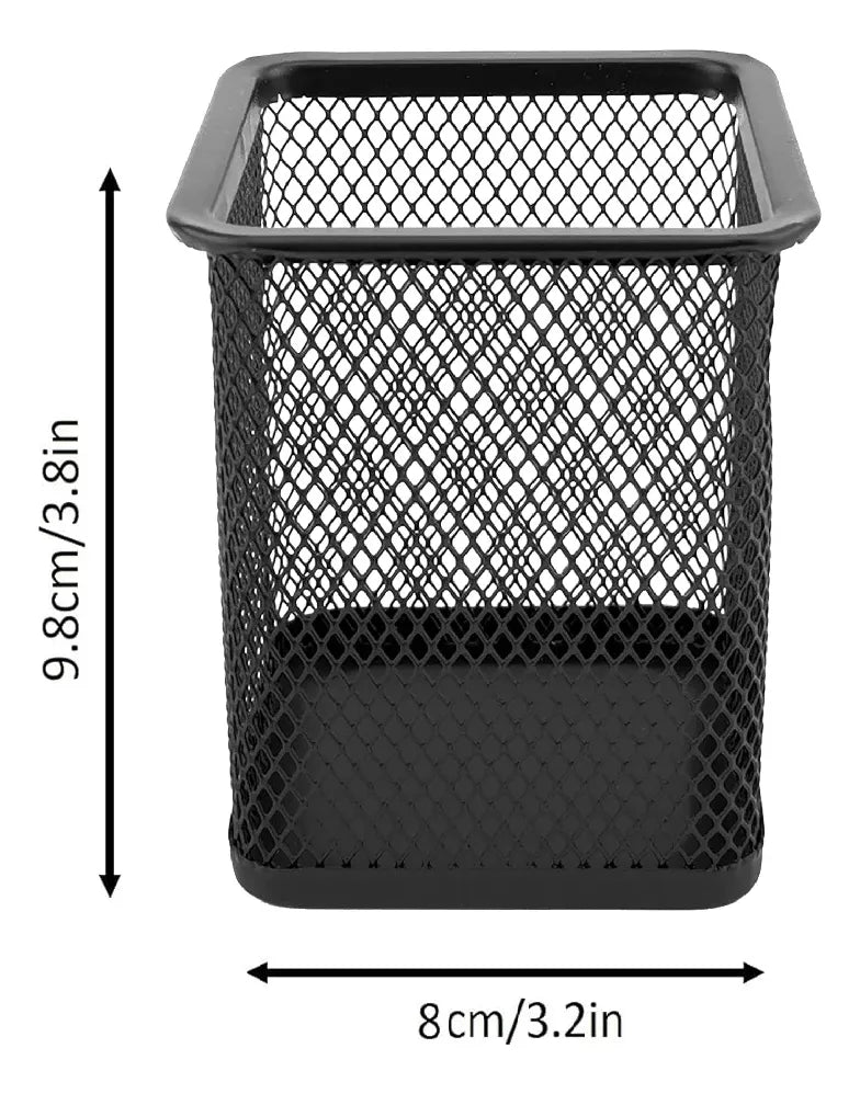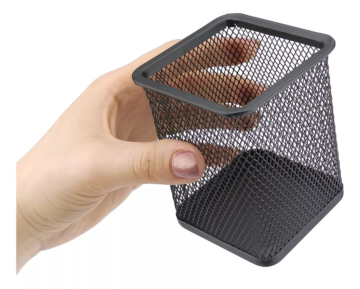 Porta Lápices Cuadrado Metálico con Malla - Elegancia y Organización en tu Escritorio