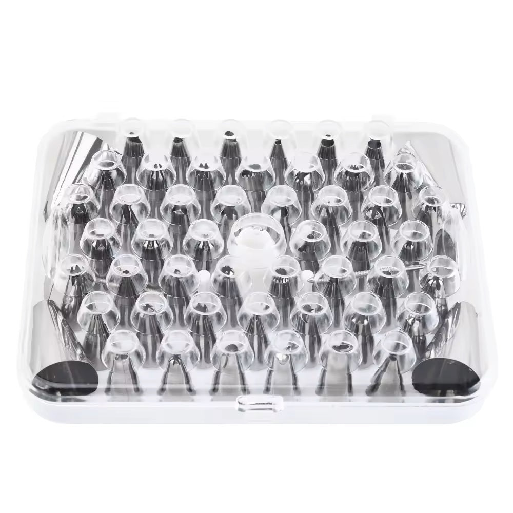 FÁCIL DE USAR: Nuestra herramienta de suministros para decoración de pasteles contiene una variedad de puntas para manga pastelera, como redondas, abiertas, cerradas, de hojas, rosas, francesas, de canasta, de pétalos, de estrella plana y de estrella cerrada. Independientemente de su nivel de habilidad, hay muchas ideas de diseño para decorar sus pasteles con facilidad y diversión.
