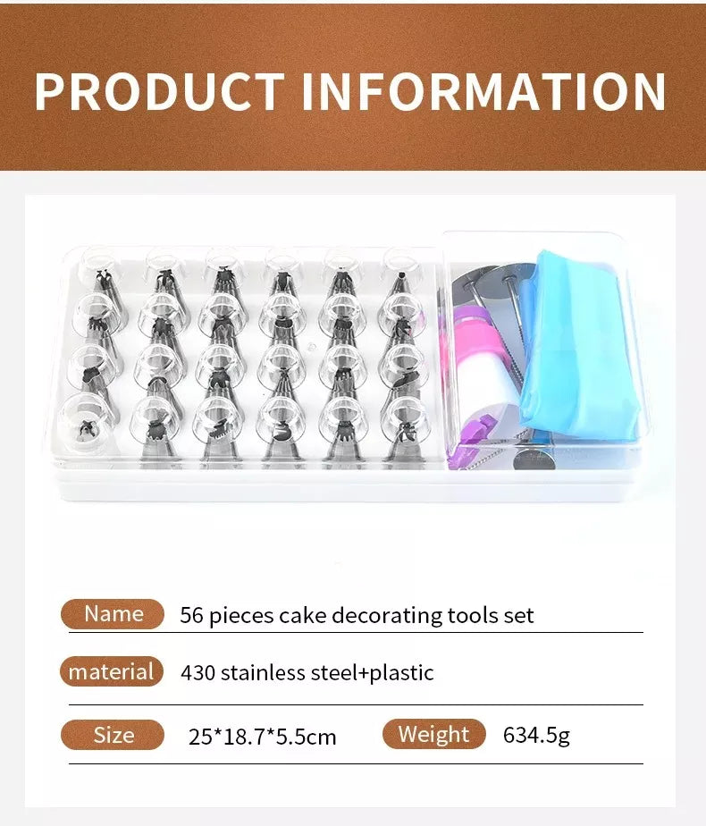 Juego de 56 piezas de boquilla de pastelería, herramienta de decoración de pasteles, tubo de glaseado de flores, rompecabezas, crema, Cupcake, accesorios para hornear, raspador de Gauter