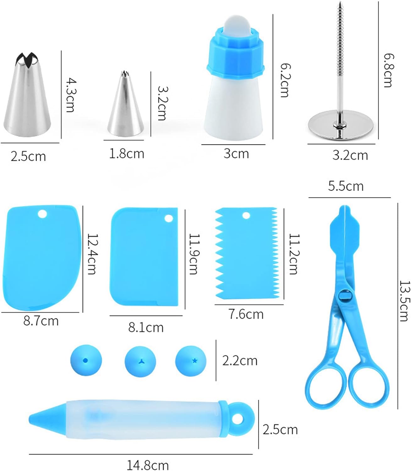 Toda la herramienta de decoración: puedes obtener cualquier herramienta que desees. Sea cual sea la tarta de fondant o pastel de crema. Los bolígrafos anhelados de fondant, bolsas de silicona reutilizables y moldes para cupcakes. Y las prácticas bolsas de repostería desechables. Las uñas de flores de pastel y las tijeras elevadoras de flores de pastel son útiles para hacer flores de crema. Los acopladores son fáciles de cambiar de punta a otra punta. El bolígrafo decorativo es la mejor herramienta de escritura para tartas.