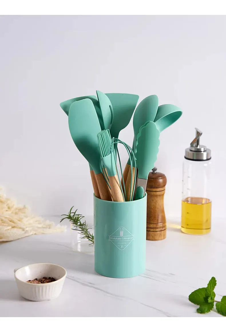 Juego de utensilios de silicona para cocina, utensilios antiadherentes resistentes al calor, 12 piezas