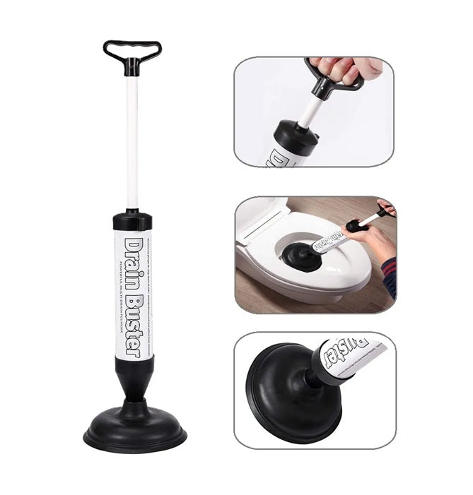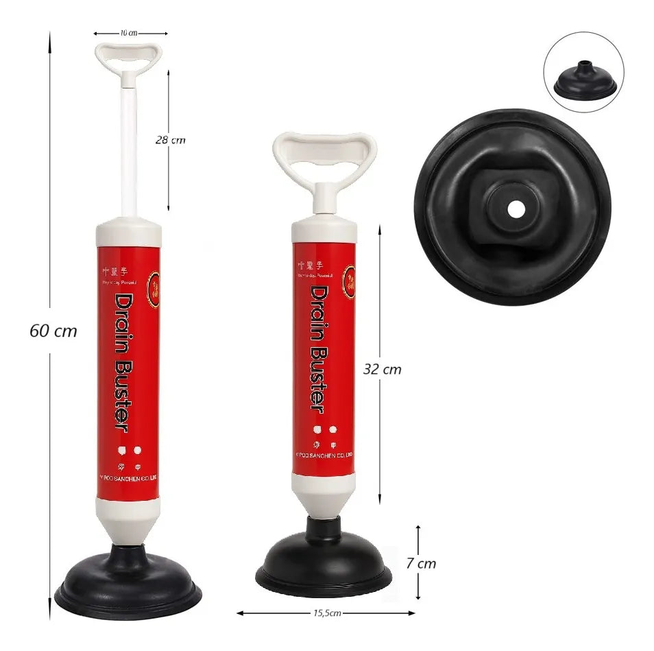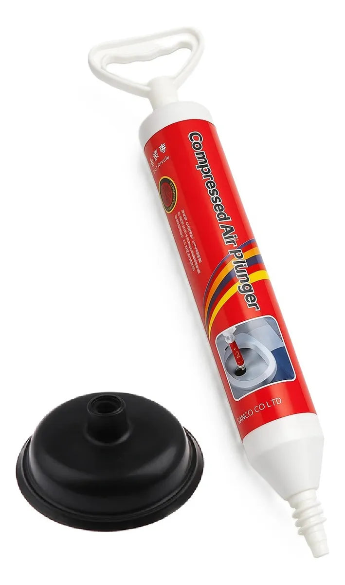 Principio de funcionamiento: Al aspirar el aire dentro de las tuberías obstruidas, se genera una fuerte diferencia de presión. El agua las azota con fuerza para dragarlas. El tubo hermético cuenta con una manija que aumenta la contrapresión al tirar, proporcionando una presión de succión mucho mayor que un destapador convencional.