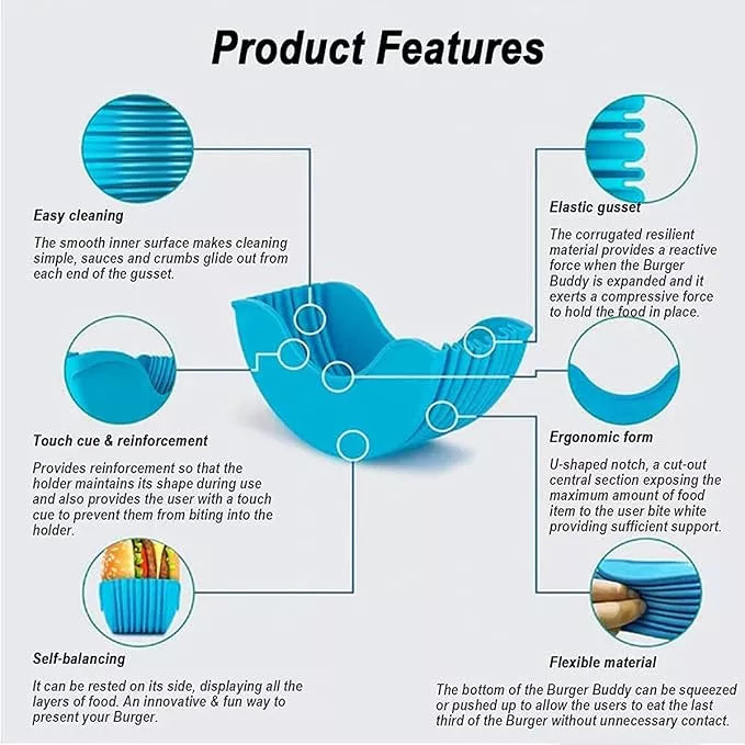 Este innovador accesorio, fabricado con silicona de alta calidad, es la solución ideal para mantener tu sándwich seguro y tu ropa libre de manchas.
