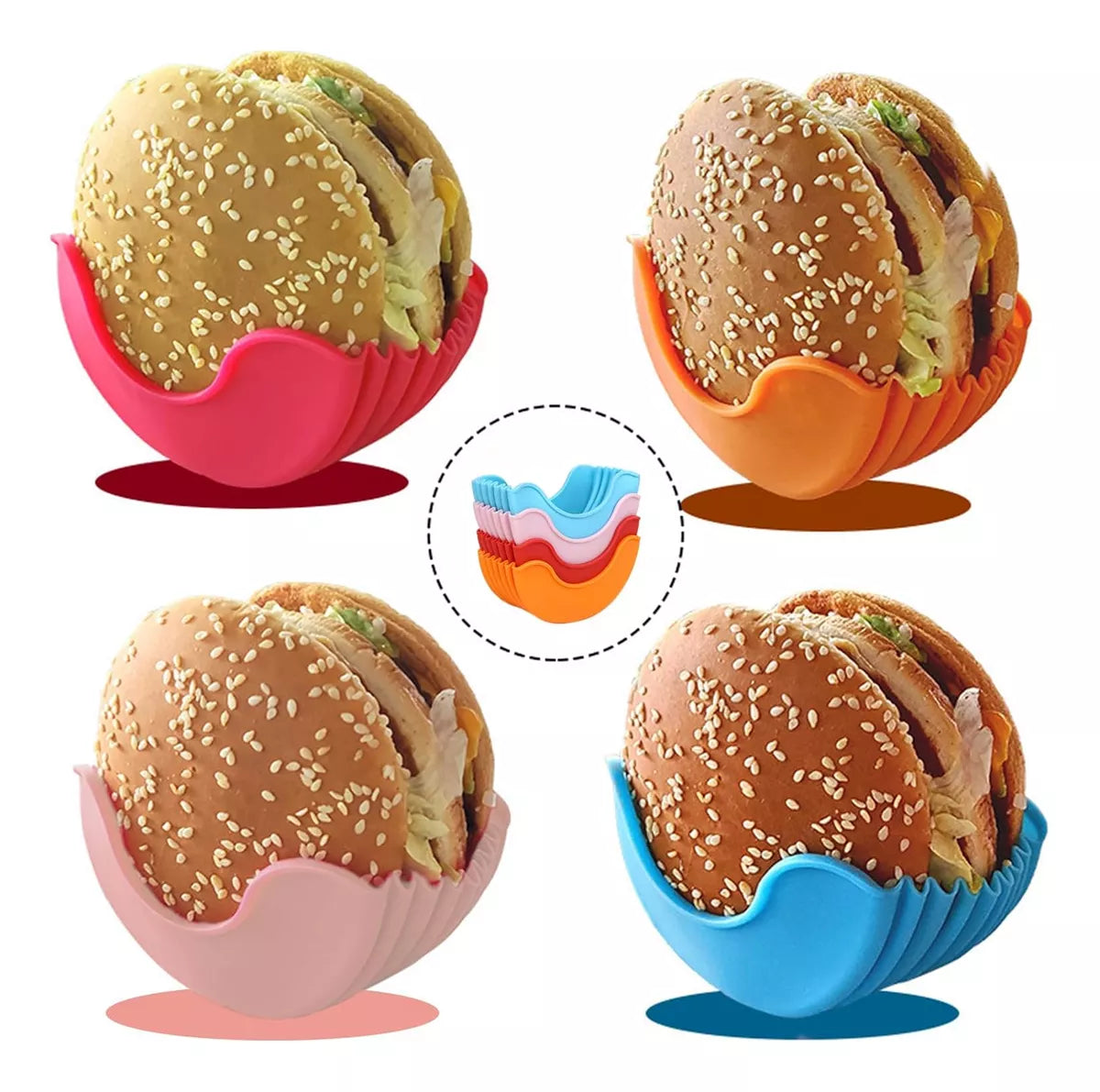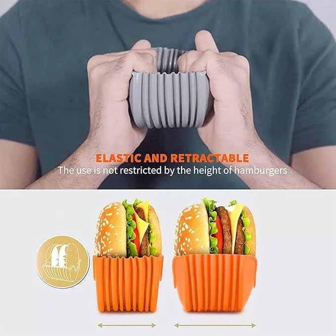 Soporte retráctil para hamburguesas, soporte reutilizable de silicona para sándwiches, adecuado para amantes de las hamburguesas, adultos y niños.
