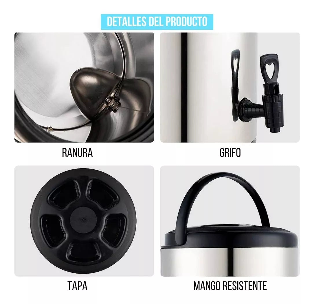Termo Dispensador de Agua Caliente Portátil Acero inoxidable 10 Litros.