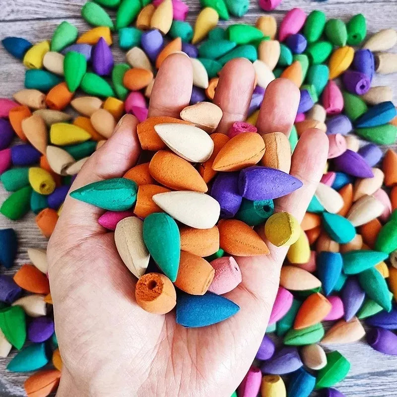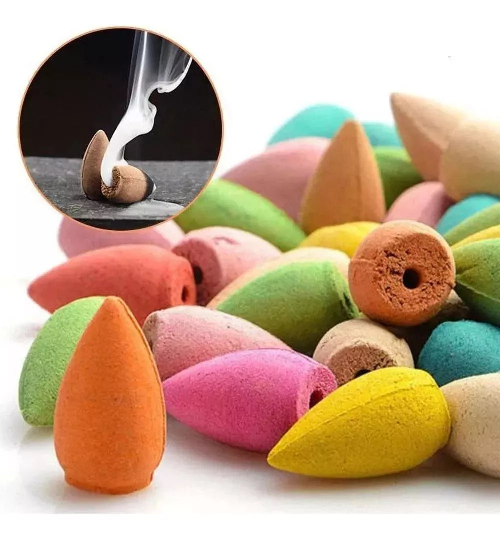Estos conitos inciensos es ampliamente utilizados en Yoga, Meditación y Aromaterapia debido a que están fabricados con aserrín de plantas medicinales y resina que aportaran un montón de beneficios al hogar , oficina o negocio.