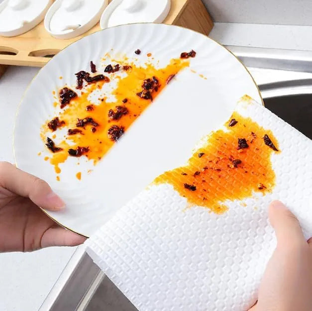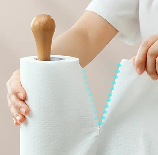 Uso versátil: nuestro paño de limpieza desechable no se limita al uso de la cocina. Su versatilidad permite que se utilice para diversas tareas de limpieza, como limpiar superficies, eliminar el polvo y abordar manchas difíciles. Ya sea en tu cocina, baño u oficina, nuestro rollo de toallas de papel siempre será útil.